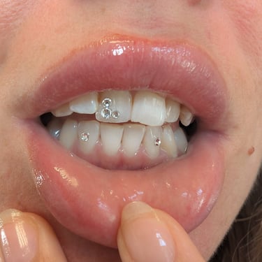 Invisible lorsque nous parlons, les strass posés sur les canines sont la définition parfaite du mot discret